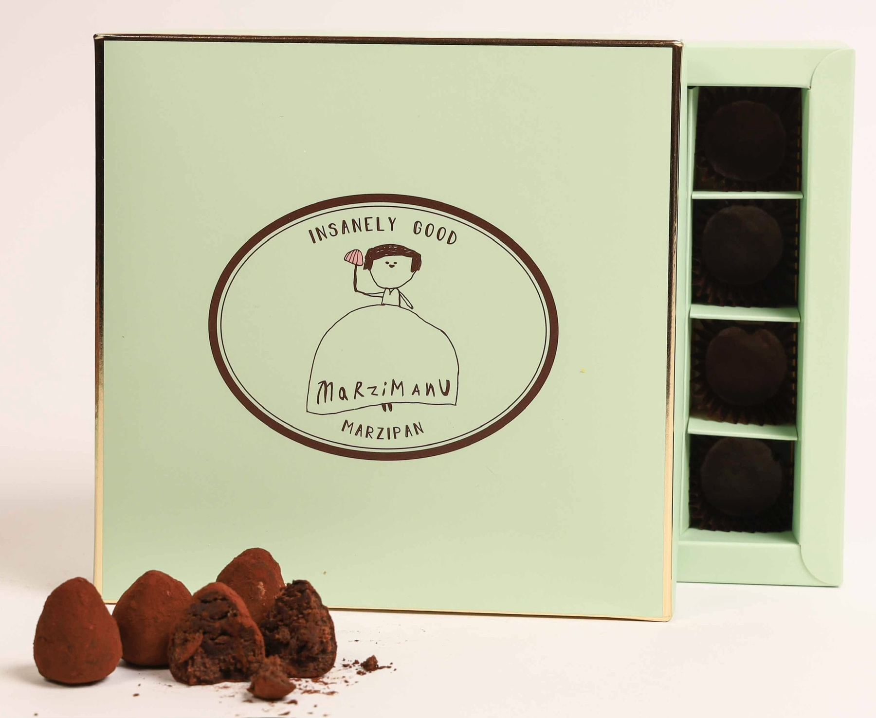 Λαχταριστές μπουκιές από χειροποίητο μάρζιπαν (80% αμύγδαλο) & (Raw) περουβιανό κακάο σε σχήμα κόνου, με έξτρα πούδρα κακάο ,απόσταγμα lime και ginger